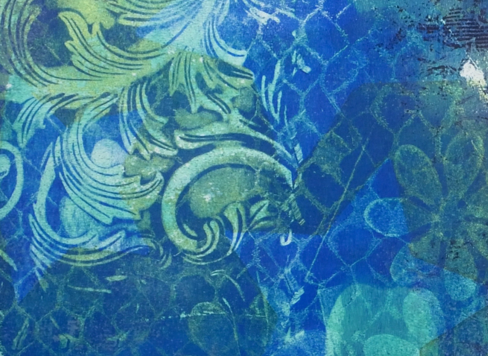 Gel printing is a very accessible art process. You need very few supplies to get started. Every print is unique. The detail will amaze and delight you. You can turn your gel prints into original cards, book covers, art journal pages, collages and more.